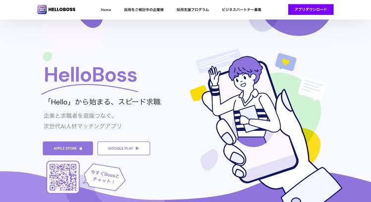 HelloBoss(ハローボス)は、AIによる自己PR作成、企業マッチング、企業研究、採用担当者とのチャット、スカウト受信までを一つにまとめた、かなり新時代らしい就活・転職アプリです。